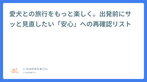 愛犬との旅行、楽しみだけど「車移動」だけが憂鬱…なんてことはありませんか? ヨダレが止まらなくなったり、吐いてしまったり。苦しそうな愛犬の姿を見るのは、飼い主としても辛いですよね。 でも、諦めないでください。「車酔い」は、事前の準備とちょっとした工夫で劇的に改善することがあるんです。 この記事では、今日からす […]2025-12-07 11:22:06愛犬との旅行をもっと楽しく。出発前にサッと見直したい「安心」への再確認リスト